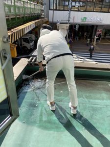 ついにたまり兼ねてホウキを持ち出し掃除を始める