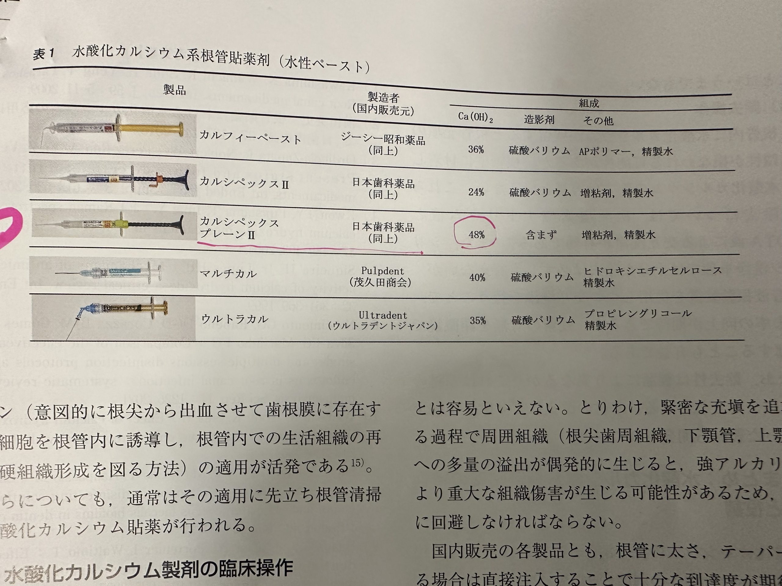 先月号の東京歯科医師会雑誌にも水酸カルシウムの分析の比較対照表ありましたね😭