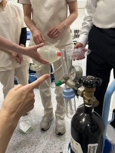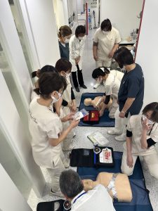 午前中早めに切り上げ、AEDの使い方、酸素投与の