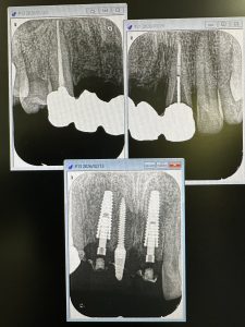 40万コースは違うメーカーで埋入のみ、軟組織の処置は無し、仮歯は前歯領域隣接歯に固定ダミーだけ