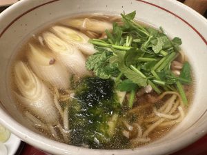 セリとネギ 鴨出汁蕎麦 非常に味が染み込んで美味い