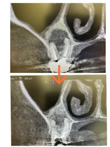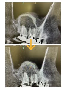 画像みれば分かるが、骨化が著しい、次回MTA根充